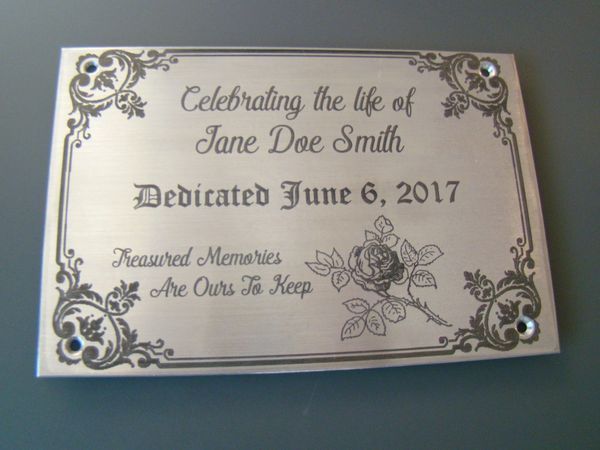 Laser Engraved Memorial Plaques. Preserve the memory of a loved one on a Marble, Granite or Wood memorial plaque. These engraved memorial plaques are not only elegant but timeless as well. Click on any of the images below to create your unique engraving with options such as border selection, text, fonts, backgrounds and more. ... Get Doc